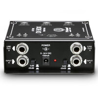 "The Palmer PAN04A is 2-channel DI box for feeding asymmetrical and high impedance electric instrument signals into a mixing desks microphone inputs. It delivers a transformer balanced, low impedance signal to the outputs and eliminates mains hum and interference caused by ground loops. The active switch leaves the frequency response unaffected and achieves a high dynamic range. In addition to 6.35 mm direct outputs and -30 dB switchable input attenuation, the DI box also features a mono output that sums both channels. The PAN04A is designed to be exceptionally robust and is suitable for both stage and studio. It can be powered with 9 to 24 V DC mains adapters or phantom power when two outputs are connected to a mixer.