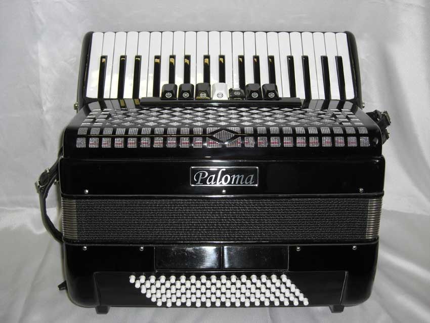 96 bass buttons Resonant wood cabinet for warm tone and Sound Perloid Heavy Lacquer High Polished finish 2 Register changes on the Left hand 7 changes on the Right Hand