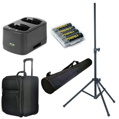 Parallel Audio Deluxe Accessory pack for Helix-158x & 208 Series PA's. Includes HX-8 TB1, PA-CH Dual charger and 4 x 2700mAh AA Batteries, HX-8 ST Stand & HX-STB stand bag