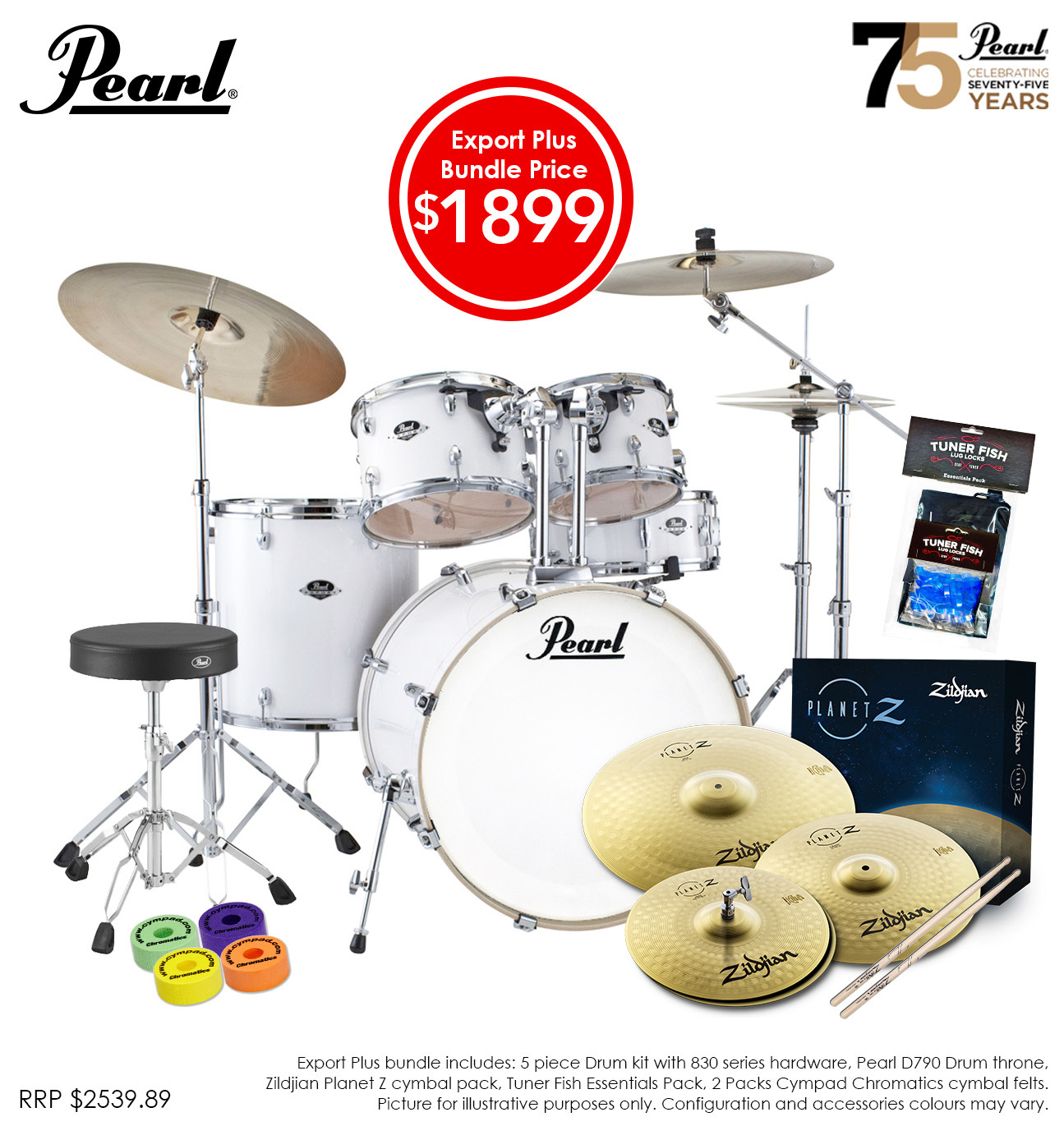 Pearl Export EXX Plus 22" Fusion Plus Drum Kit Package - Pure White. The kit that spawned a thousand drumming legends is back for a new generation. Pearl’s new Export is built stronger than ever to give the student drummer’s lifetime of play a strong beginning. With features like Reference-inspired shell composition and our unbeatable 830 Series hardware package, Export is ready to fuel the fire for future drumming icons.