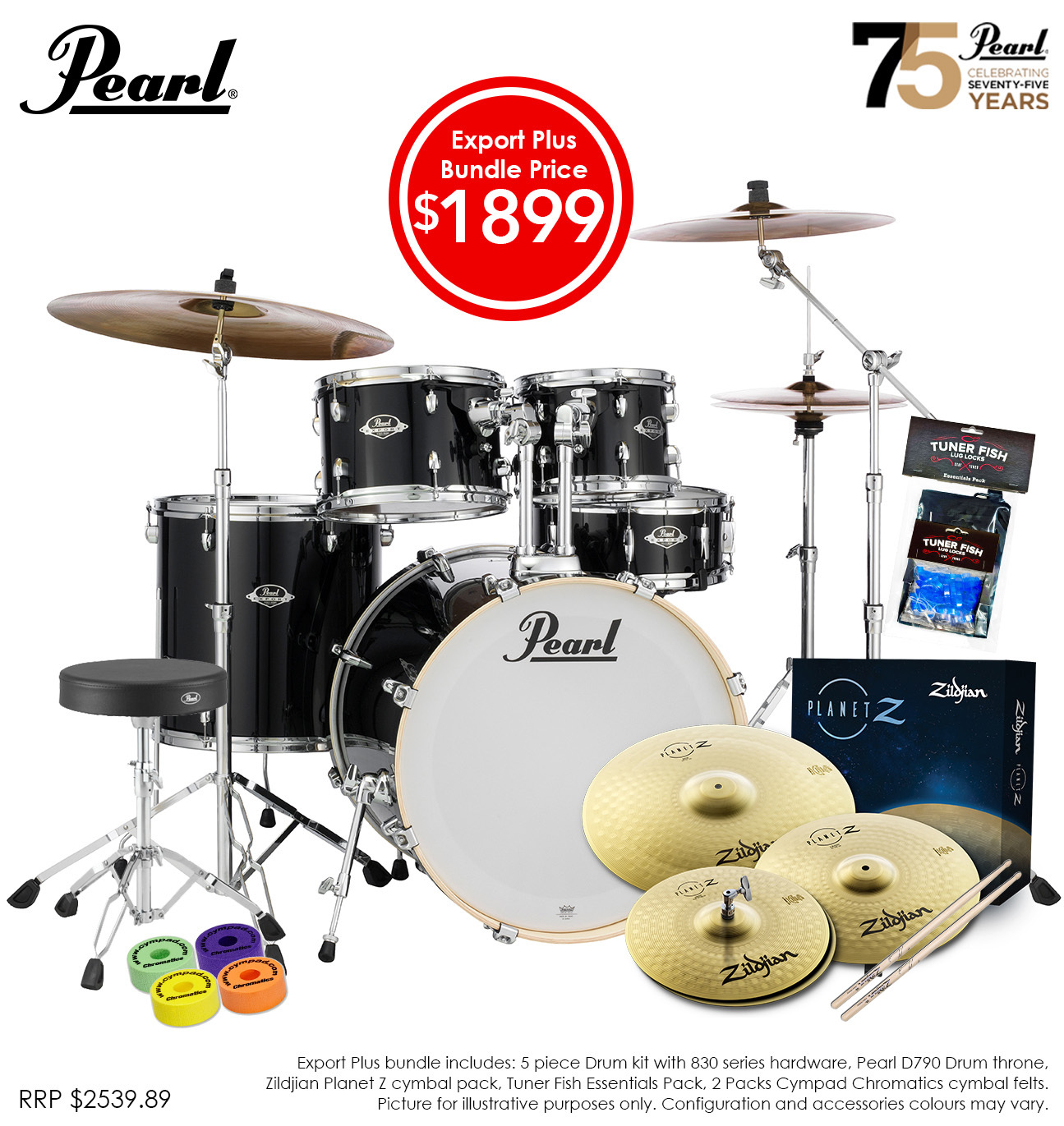 Pearl EXX Export Plus 20'' Fusion Drum Kit Package [Jet Black] w/ Hardware, Throne, Cymbal Pack, Sticks & Accessories