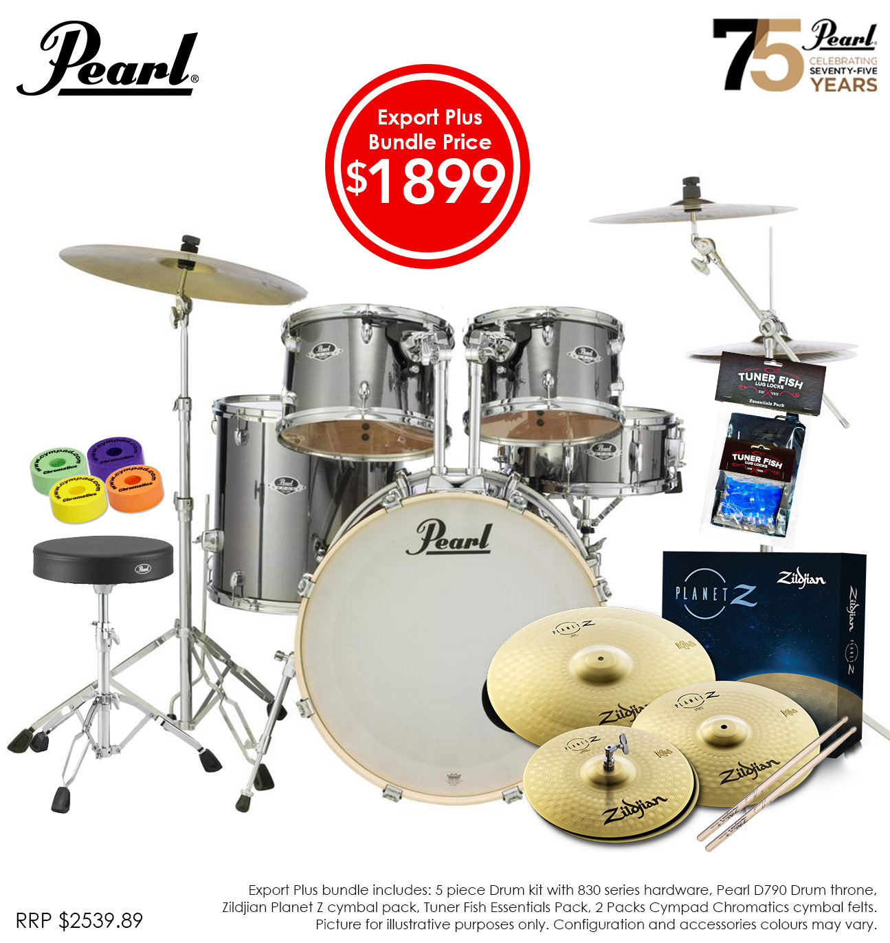Pearl EXX Export Plus 22'' Fusion Drum Kit Package [Smokey Chrome] w/ Hardware, Throne, Cymbal Pack, Sticks & Accessories