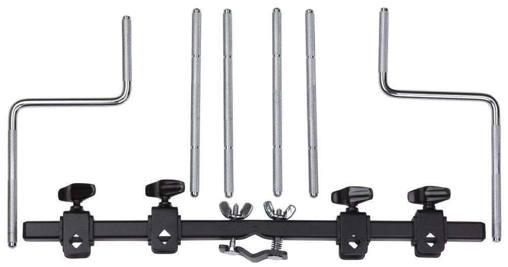 Features 18" percussion rack with 4 straight and 2 Z posts for arranging and holding various percussion instruments suited to 3/8" posts.