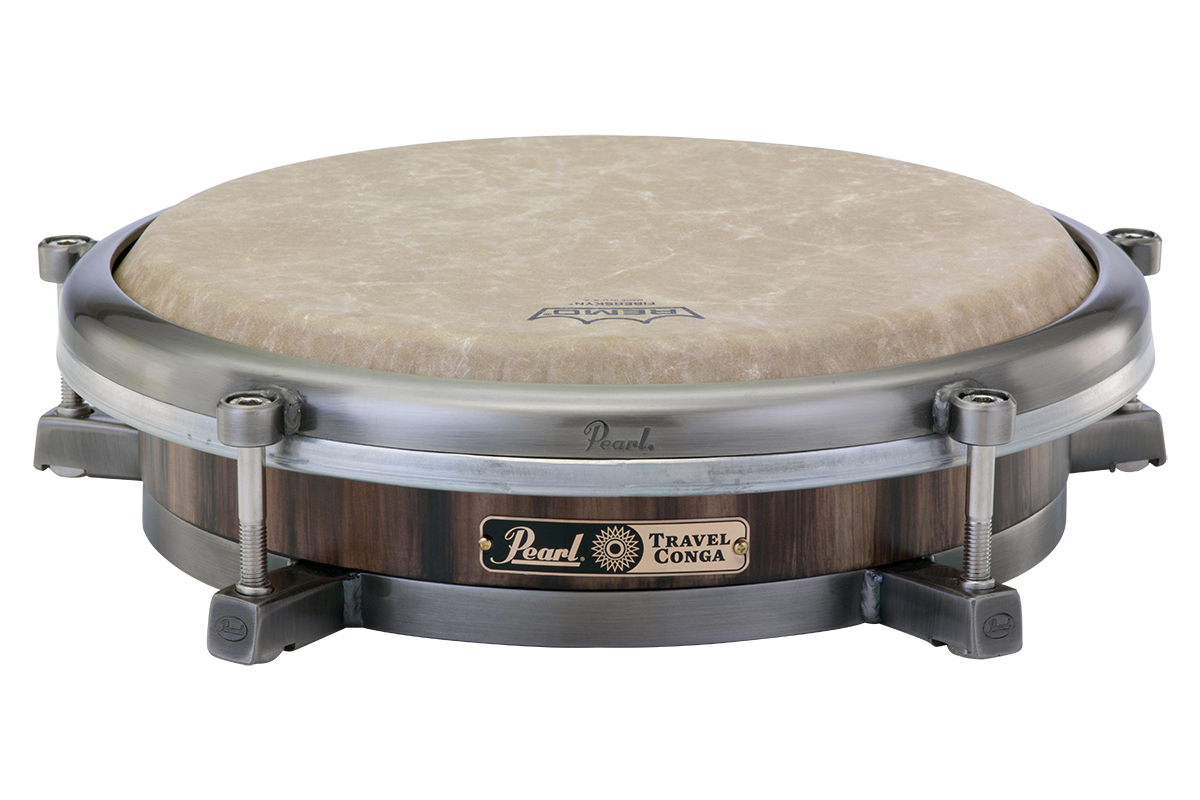 In 2011 Pearl introduced the original Travel Congas and the portability of congas was changed forever. Rather than the traditional 28” height of a conga, Pearl’s Travel Congas features 3.5” deep wood shells that deliver maximum portability and sound. Like traditional congas they utilize stave construction and feature real size Quinto (11"), Conga (11.75") and Tumba (12.5") heads. Tuning the Remo Symmetry heads is effortless with five precision Allen tuning bolts and the included wrench. The shell is finished in #510 Caramel Brown. Matching Travel Bongos are also available. The newly redesigned Travel Congas also have a newly designed stand that is sold separately. The PC800TC accepts all three size Travel Congas and utilizes a tension lever mounting system that securely locks your drum in place. The wide based, large rubber feet, and double braced legs provide a solid foundation for your drum and prevents the stand from creeping during performance. Each stand includes a travel bag with shoulder strap, so your stands are as portable as the Travel Congas.