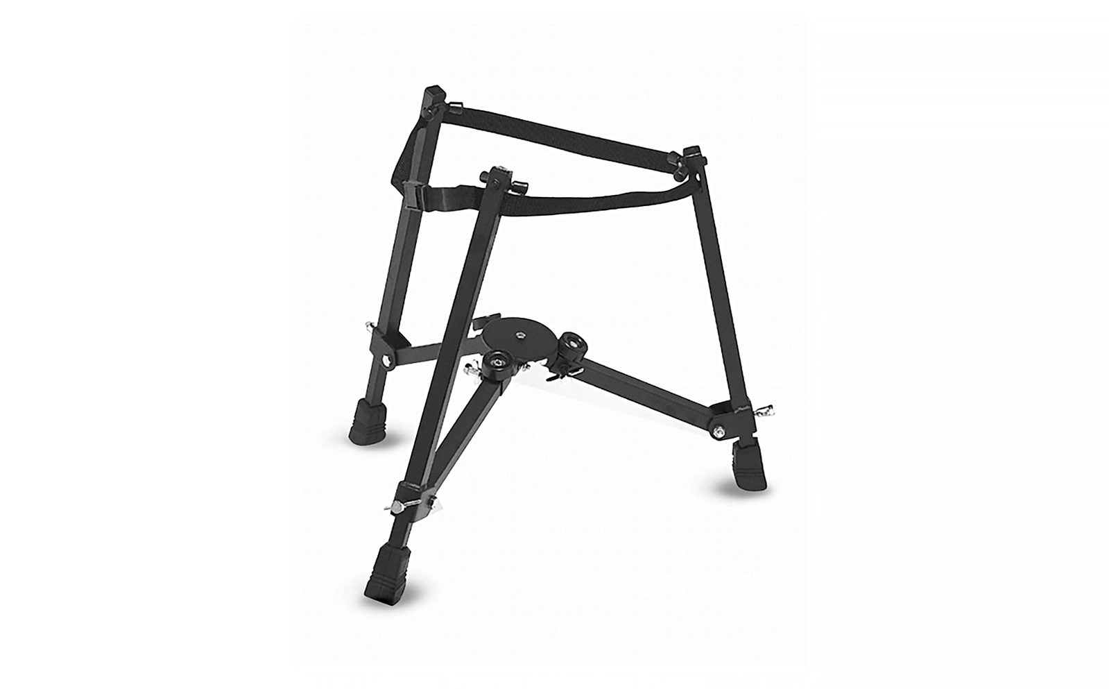 The PC-900 features height adjustable legs. At the shortest setting the stand is 20" tall, and at the highest setting the stand is 27". Each leg has seven 1" index marks to assist in setting the legs to the exact same height. The base of the stand includes three adjustable bumpers to accommodate different size openings on the bottom of the drum, once adjusted these bumpers hold the drum in place.