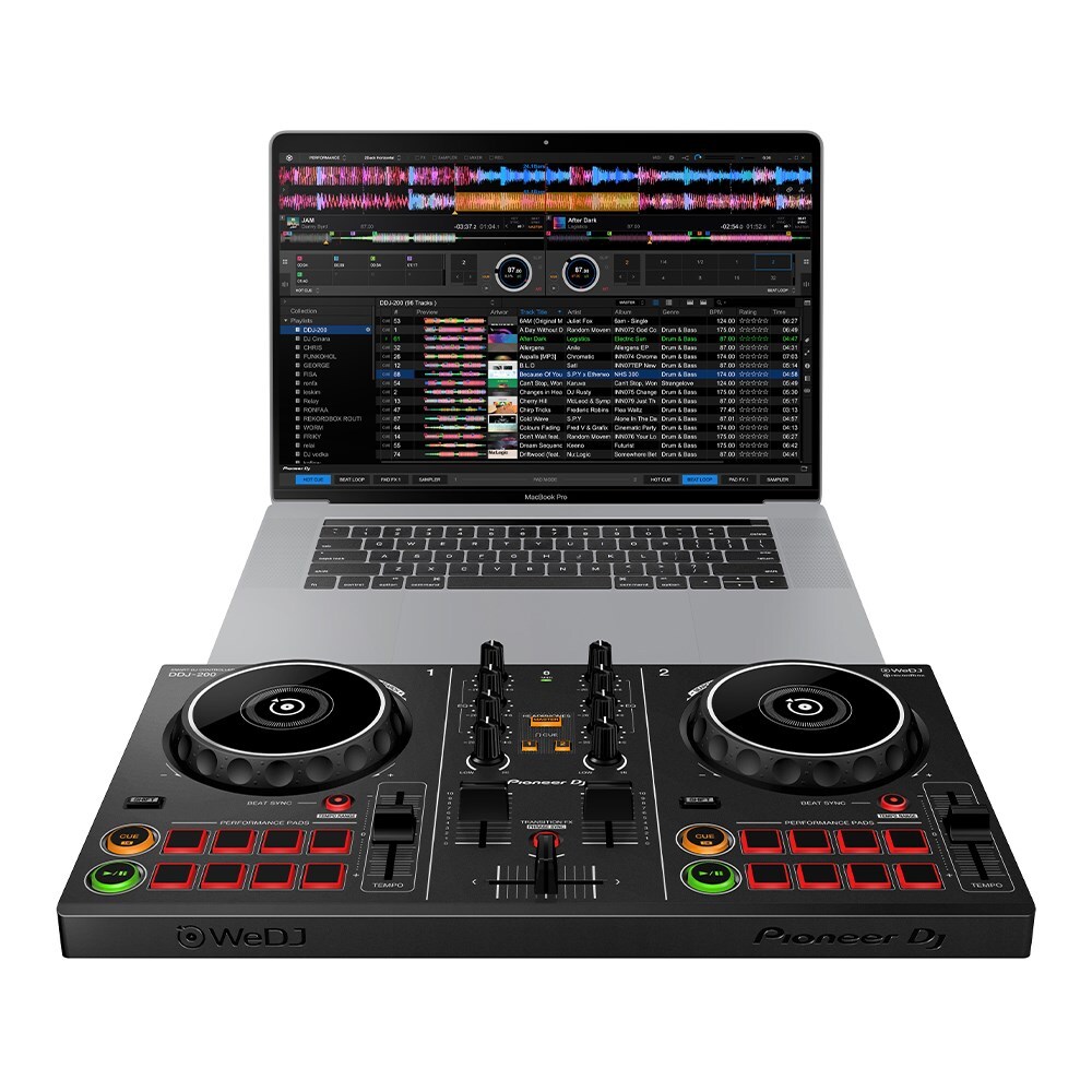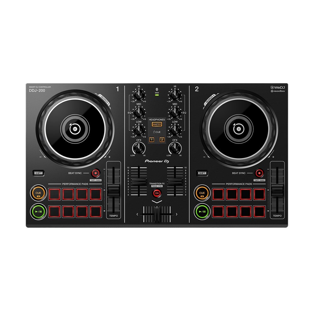 Start DJing with our easy-to-use DDJ-200 smart DJ controller. lightweight and compact with a pro-style layout, it’ll help you learn how to mix and, if you want to, develop DJing from a hobby into something greater. put your personal twist on the music as you mix for friends at events. Play tracks through your smartphone or pc/Mac using a variety of DJ apps and software such as our dedicated, free app WeDJ for iPhone, in addition to djay and edjing mix. Depending on your device and the program you select, you can mix music saved on your iTunes or rekordbox library, or stream songs from Beatport link, SoundCloud go+, Deezer, TIDAL or even Beatsource link.