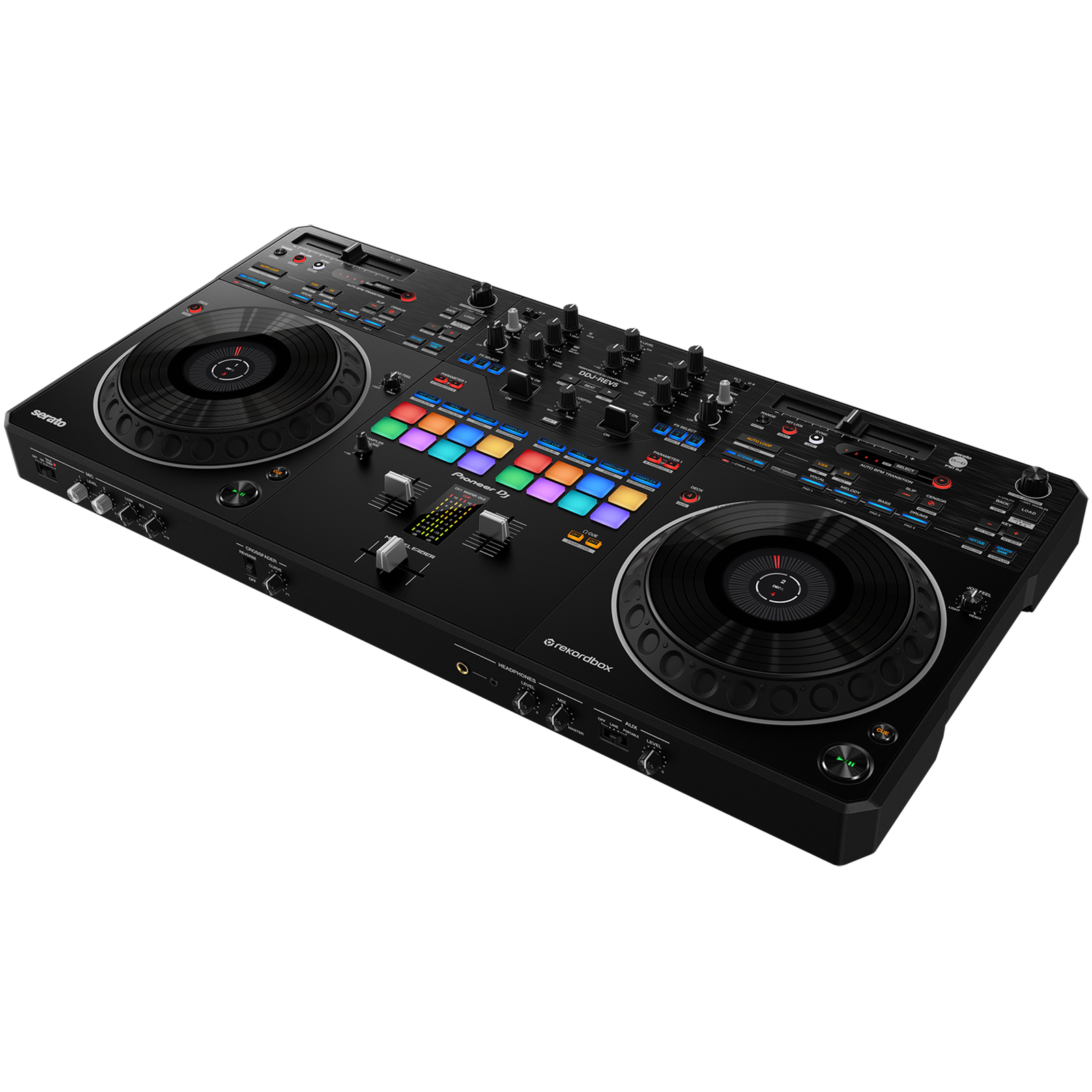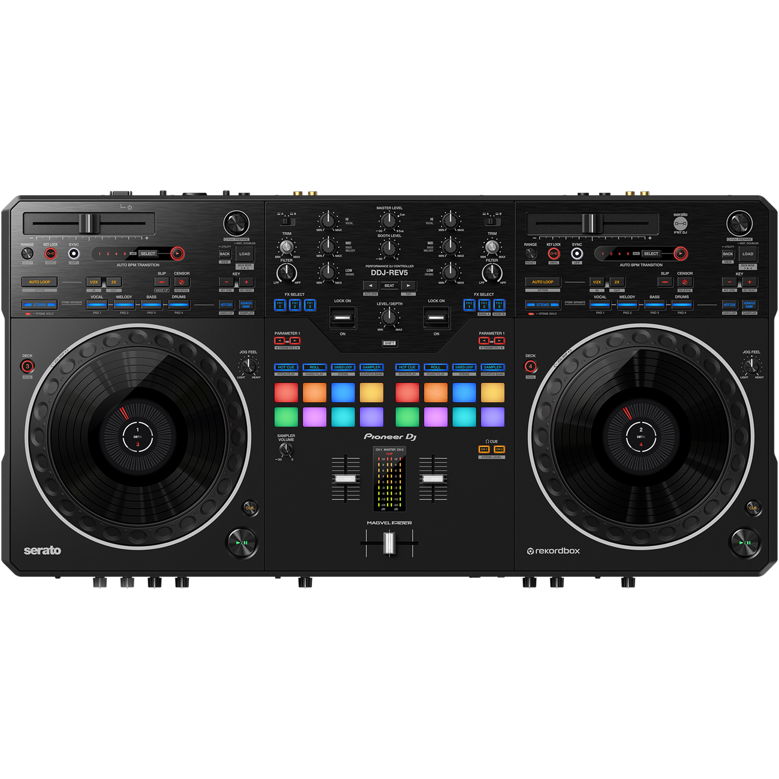 The Pioneer DJ DDJ-REV5 is a new-generation controller with Serato DJ Pro and rekordbox compatibility. Above all, this 2-channel unit offers an authentic scratch experience and innovative features. In fact, it includes large jogs, MAGVEL FADER, dedicated buttons for Stems control, the first-ever Auto BPM Transition, and Piano Play mode.