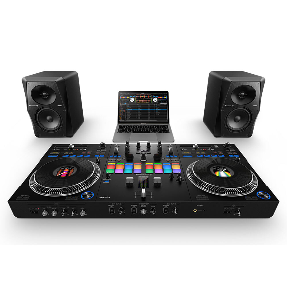 The Pioneer DJ DDJ-REV7 allows you to the most from the Serato DJ Pro performance software. It boasts a brand-new design that includes large, motorized jog wheels with On Jog Display to create a tactile connection between you and your music. The layout of this 2-channel unit emulates a professional DJM-S mixer + PLX turntable setup and includes specialized features for open-format and scratch DJs.
