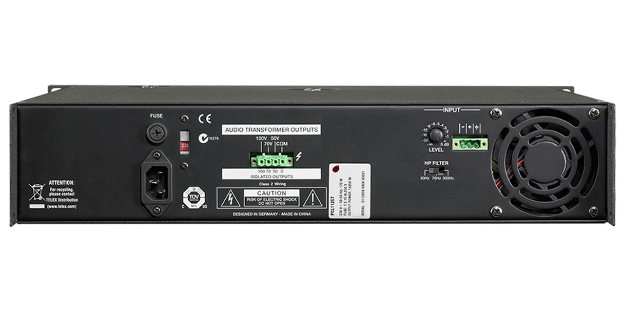 Different hi-pass filters with switchable cut-off frequencies are a part of every PCL-Series power amplifier, helping to reduce undesired low-frequency noises. Fan noise is kept to a minimum using infinitely variable low-noise high-performance fans, which ensure perfect thermal stability. A smooth airflow from front to back is made possible by the direct "flow-thru" chassis design, which enables trouble-free operation even in tiny amp racks. With low-leakage toroidal transformers, compact high-density power supply systems offer significant headroom well above the specified power rating.