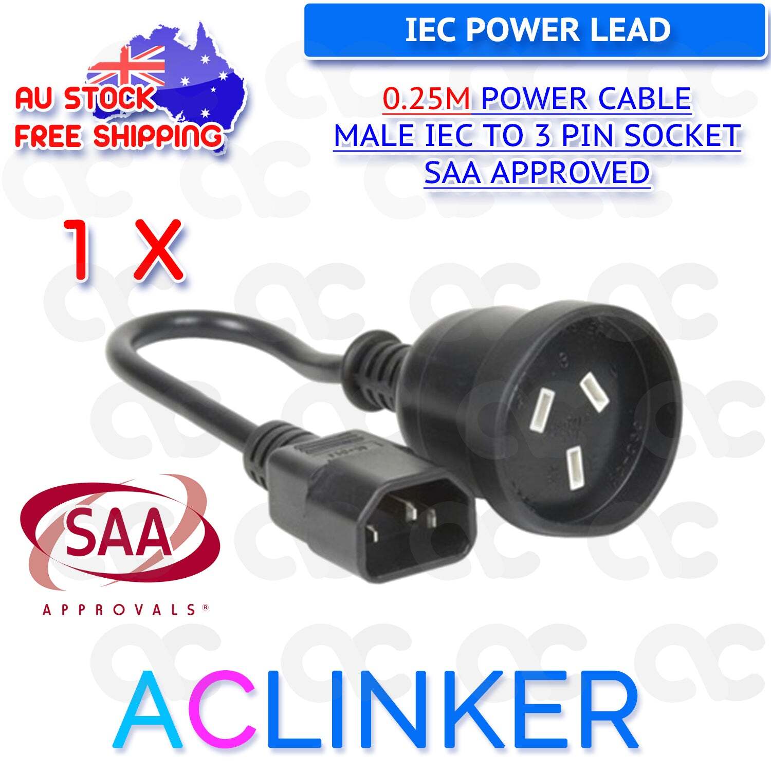 3-pin socket (the standard one found on the wall in Australia and New Zealand) to an IEC Male Connector