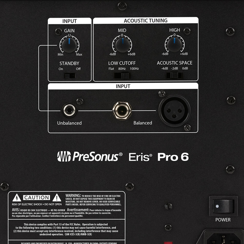 Acoustic tuning controls and a three-way Acoustic Space control lets you accurately configure the Eris Pro 6 for your room. Flexible input options enable connection of almost any line-level source, from mixers to audio interfaces and more. Provisions for wall and ceiling mounts make it easy to integrate Eris Pro 6 monitors into any stereo or multi-channel system.