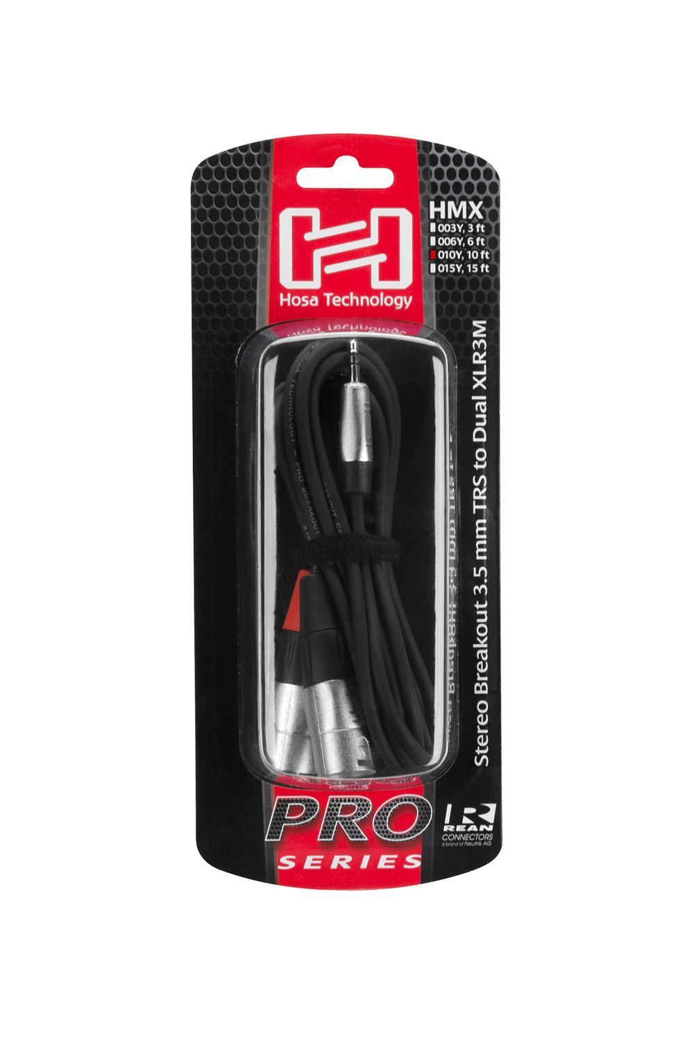 HOSA HMX010Y Pro Stereo Breakout, REAN 3.5 mm TRS to Dual XLR3M, 10 ft
