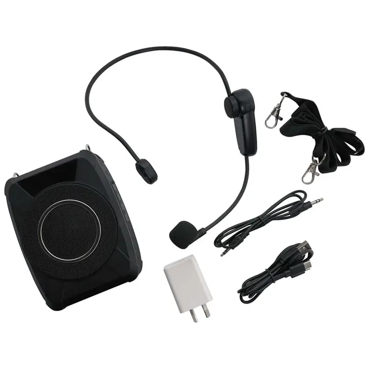 A compact portable PA system with headset, providing a way to increase the volume of your voice when addressing small crowds. The speaker can be used with the included adjustable belt/shoulder strap or freestanding to provide additional clarity wherever you need it.