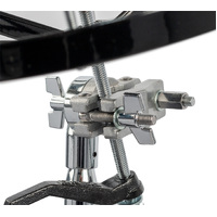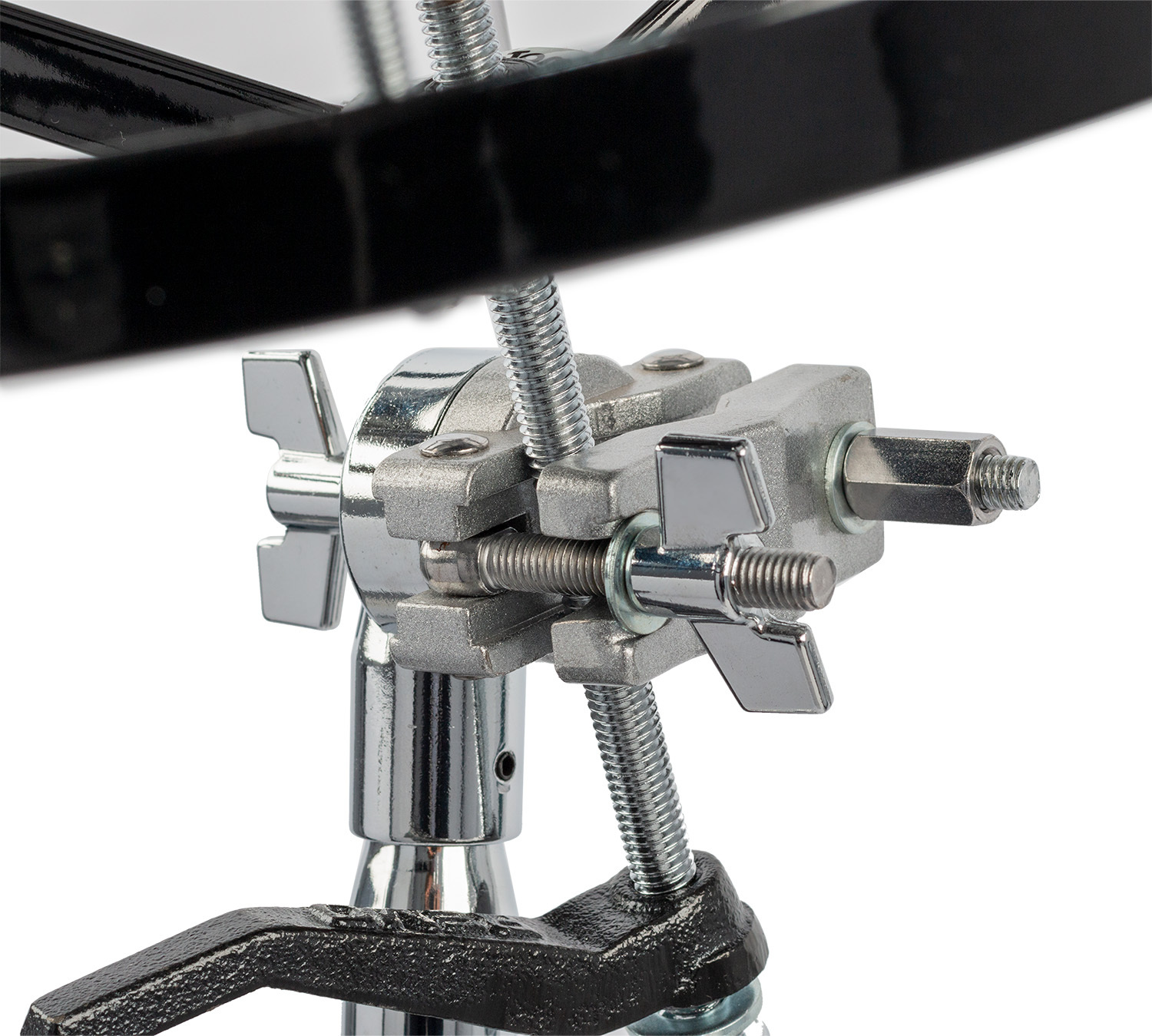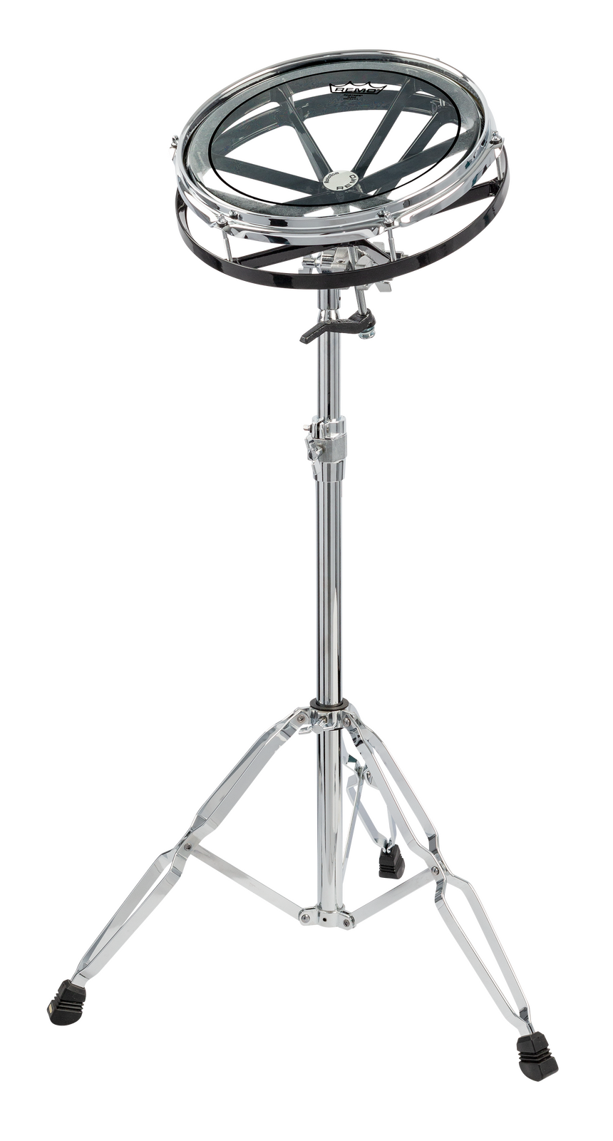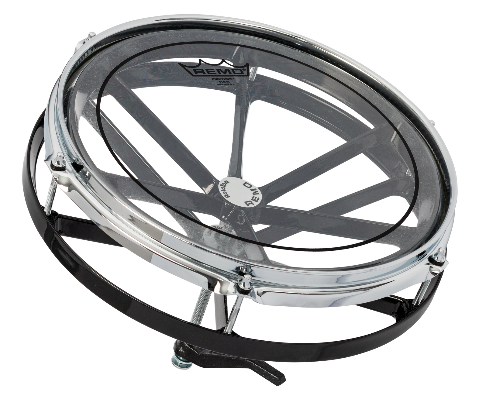 The Rototom® is constructed with a rapid-tuning system, allowing for instant tuning in a range of more than one octave. The Rototom® does not have a traditional drum shell. Instead, the drumhead and counterhoop are mounted on an aluminum frame (spoke) through which the tension rods are attached to a bottom frame which is mounted on a threaded center bolt. Rotating the frame raises or lowers the tension, thus raising or lowering the pitch of the drum. Their versatility has led to the widespread use of Rototom®s in live situations, recording studios, percussion ensembles and symphonic Concert music. Tunable. Fitted with Clear Pinstripe® drum head. Rototom only.