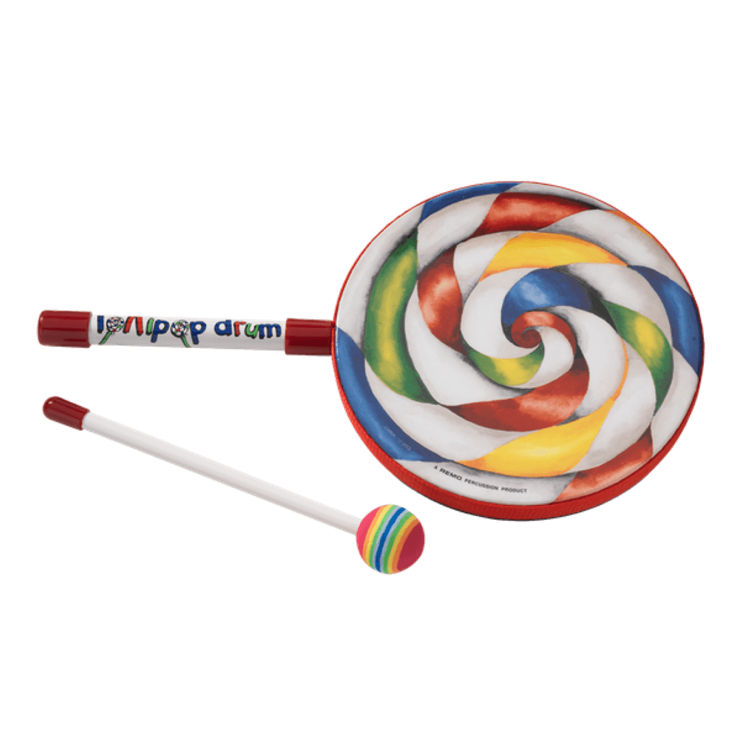 The Kids Percussion® Lollipop Drum® is an easy to play frame drum shaped like a lollipop and features a pre-tuned graphic drumhead with a warm, resonant sound. Featuring an Acousticon® shell and a pre-tuned graphic drumhead, the Kids Percussion® Lollipop Drum® is easy to play with hands or the included mallet. Excellent for use in Recreational and classroom settings. Ages 3 and up. Available in sizes: 6”, 8” and 10”.