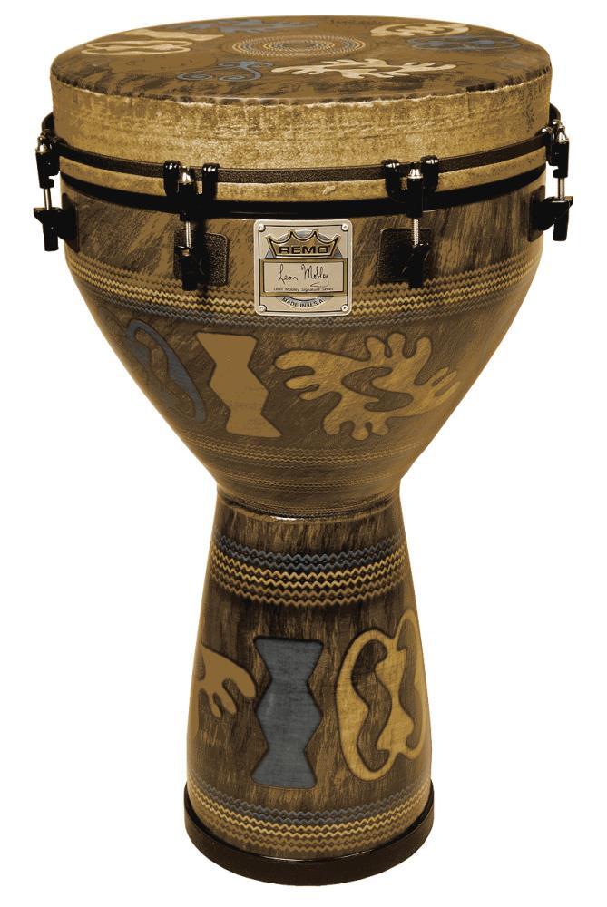 The Remo Designer Series Key-tuned Djembe comes in a variety of traditional patterns and colors that match the drum heads for an outstanding visual.