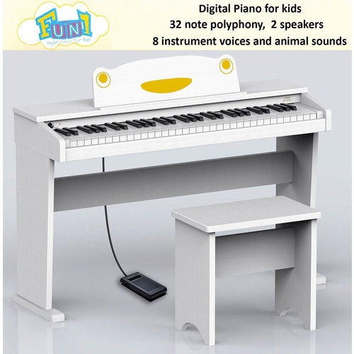 - The Fun-1 has over 8 different instrument voices to make learning fun and exciting. The instrument voices are Piano, Electric Piano, Vibraphone & Church Organ. Also it includes fun animal sounds that you can play by the piano keys such as Dog, Sheep, Bird and a Applause sound effect.