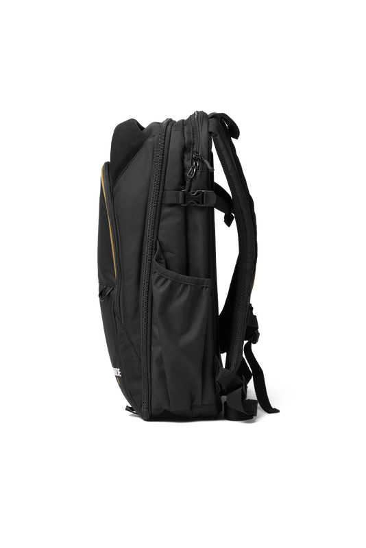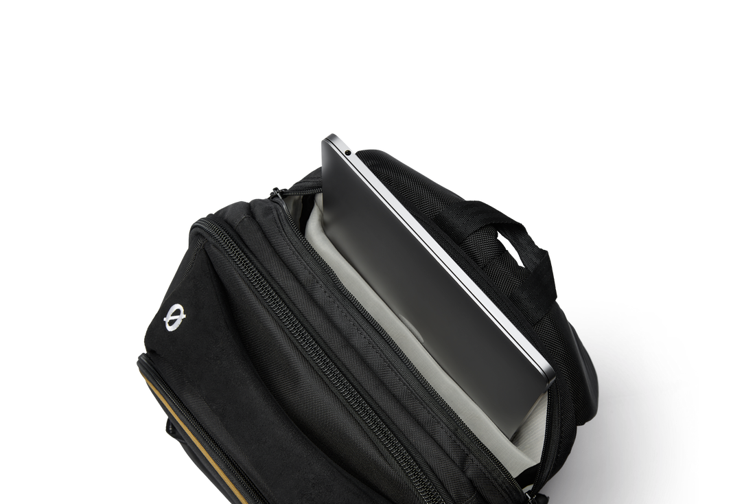 Not only does the Backpack sport a sleek, understated aesthetic, but it has luxurious comfort and rugged durability to match. Its exterior is constructed from weather-resistant, ballistic-grade nylon, it features a lush Alcantara® carry handle, it features ergonomic shoulder straps and sternum strap, and the interior is lined with padding and brushed polyester to keep your gear immaculate.