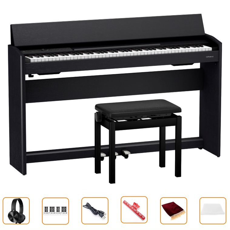 Roland F701CB Digital Piano- Black w/ Bench and Bonus Bundle