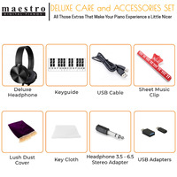 Bundle including Wooden Stand, Bench, Headphones, Key Guide, Dust Cover, 3.5MM Stereo Female to 6.5MM Male Stereo Converter