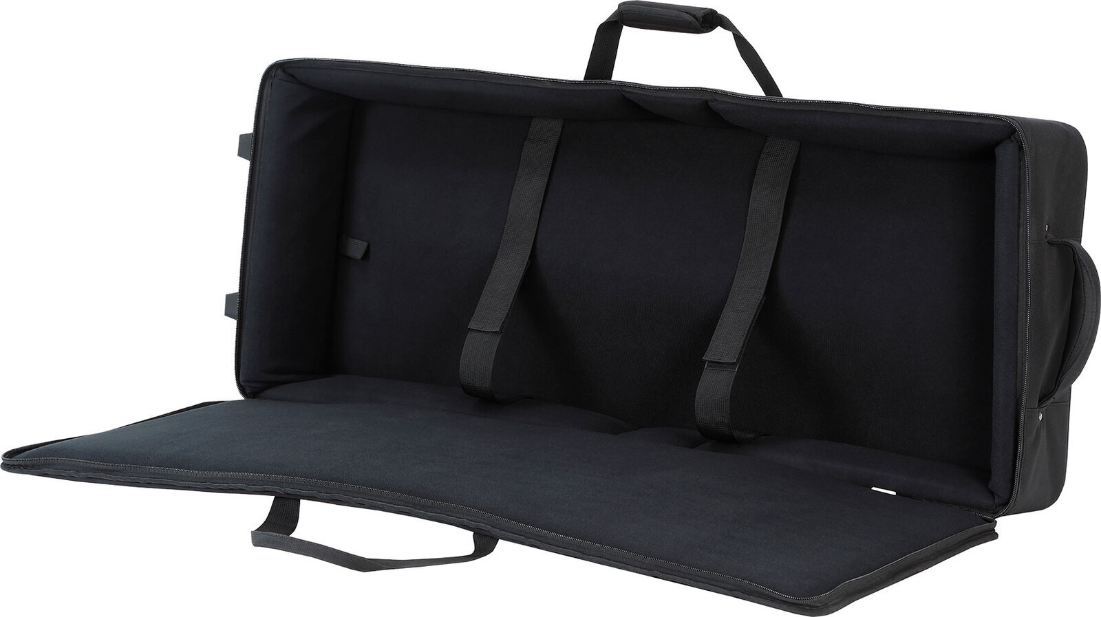 Roland’s Gold series keyboard cases are built with the needs of serious musicians in mind. Designed for 61-note keyboards` the SC-G61W3 features durable exterior materials` side impact walls` thick internal foam padding` and adjustable straps to secure and protect your instrument during transport. Three built-in wheels` skid rails` and reinforced handles make travel easy wherever you need to go` while the extra-large front pocket is perfect for carrying pedals` mics` and other items to the gig.