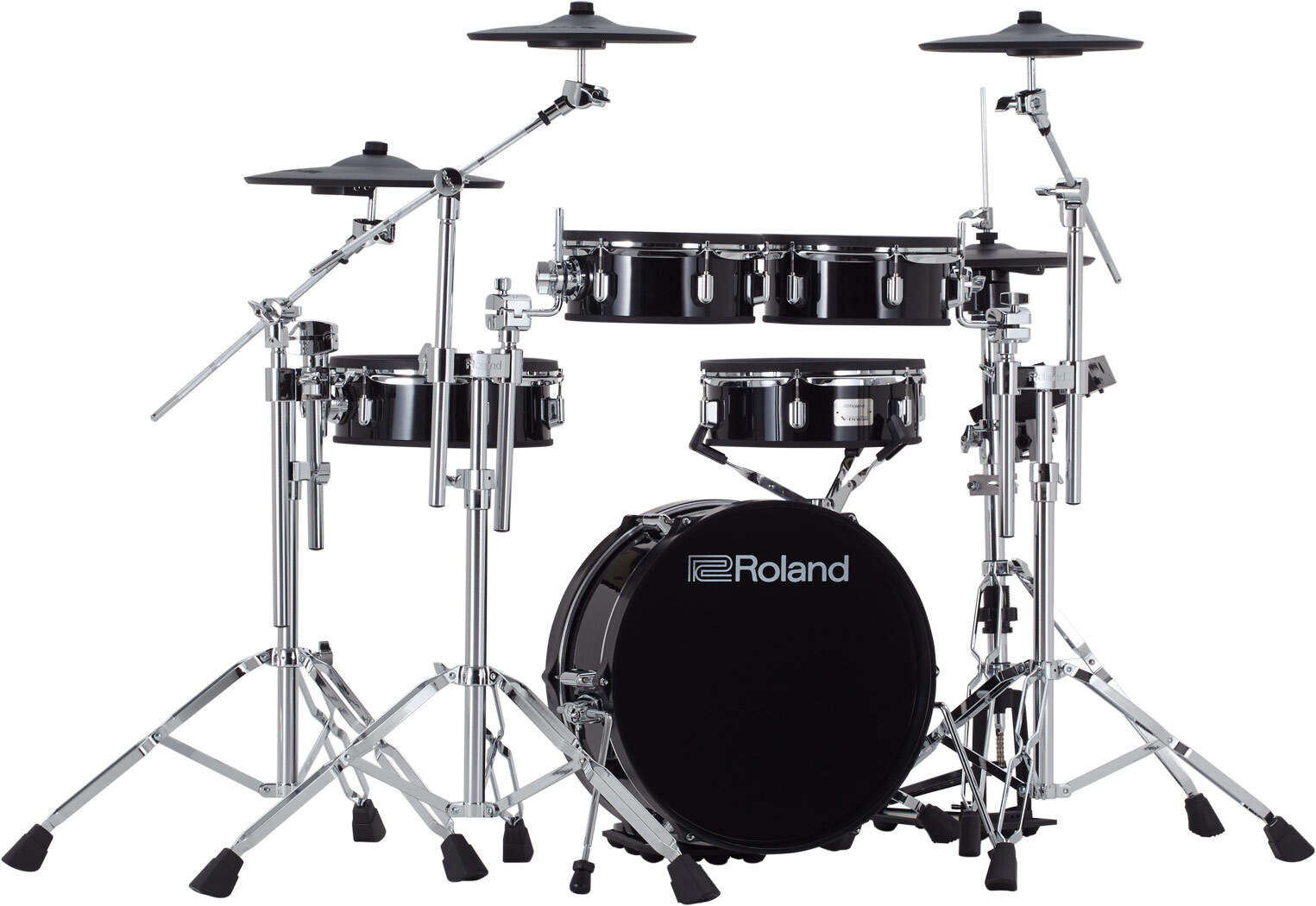 - Space-saving V-Drums Acoustic Design kit with shallow-depth wood shells and upgraded double-braced chrome stands
