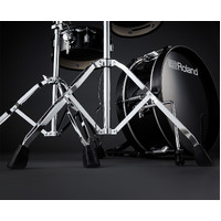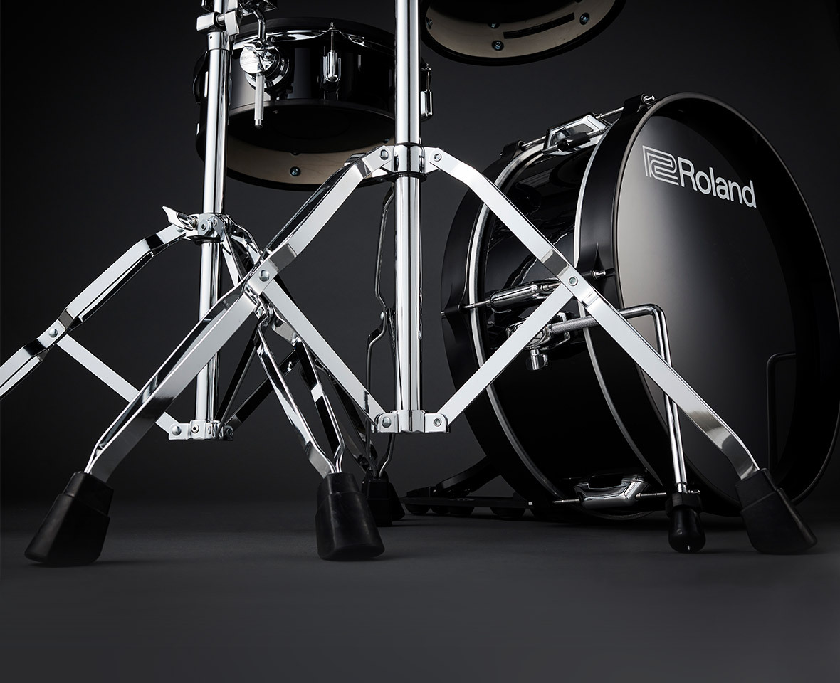 The way acoustic drums and cymbals are mounted not only projects a classic image—it also influences the playing feel. The tom pads mount on the same stands used for acoustic toms, so they feel just right when they’re hit. And every stand is double braced for rock-solid stability and easily adjusted to suit your preferred layout.