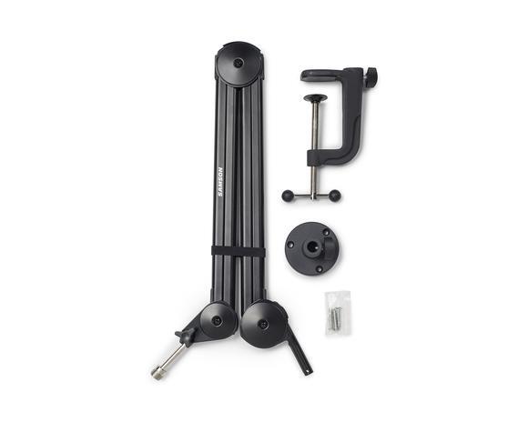 With two mounting options included, the MBA28 can be temporarily attached to a table or desk with the C-clamp mount, or more permanently fixed to a surface with the flange mount. In combination with durable steel construction, this mic boom arms offer 5/8"-27 mic clip threading that can accommodate any mic weighing up to five pounds.