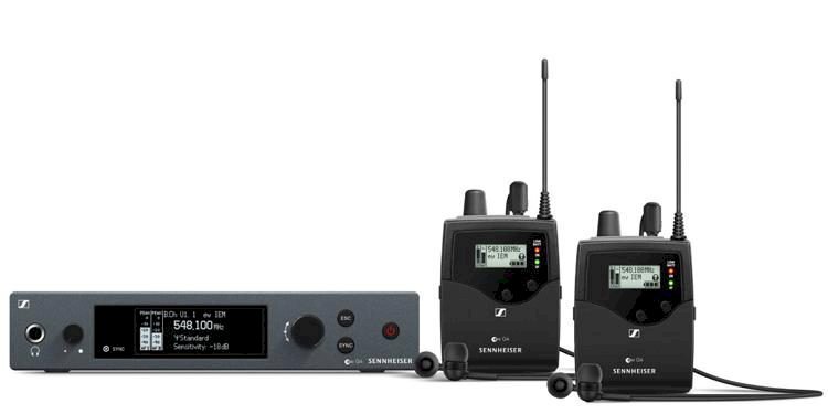 Sennheiser ew IEM G4-TWIN-B Wireless stereo monitoring twin set. Includes (1) SR IEM G4 stereo transmitter, (2) EK IEM G4 stereo bodypack receivers, (
