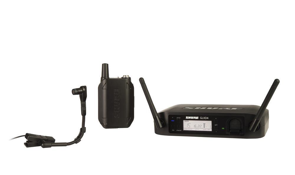Shure SHR-GLXD14B98 Wireless Dig Instrument System GLXD1 Tx; Beta98 Mic; GLXD4 Rx Auto Setup: 2.4GHz