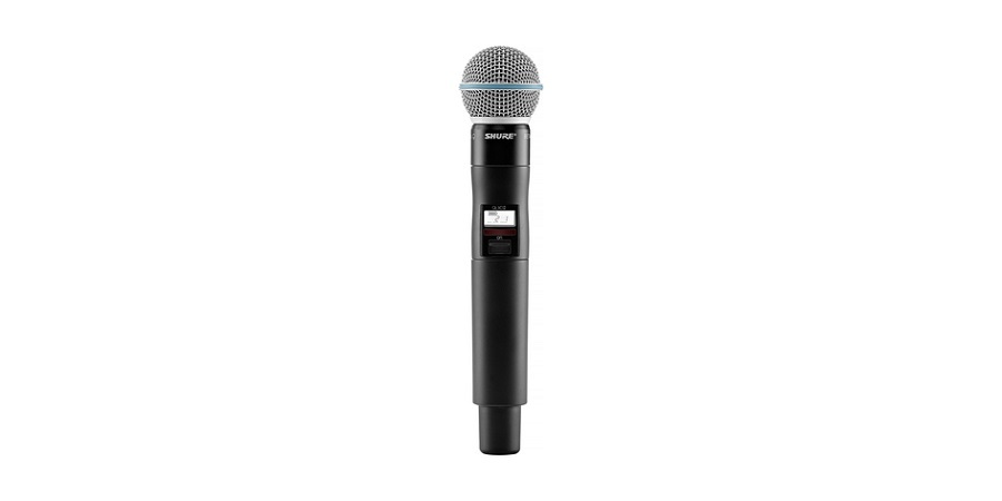 The Shure Beta58 handheld microphone is a clear-quality sound reproducing transmitter featuring full-metal construction for excellent durability, and long-lasting performance of up to 9 hours with 2 AA alkaline batteries, or 10 hours with Shure's lithium rechargeable batteries. This microphone is most ideal for presentations, music venues, and house of worship applications. Use in combination with the compatible QLXD4 Digital Wireless for exceptionally quick wireless connection setup, providing you with safe and secure uninterrupted frequencies.