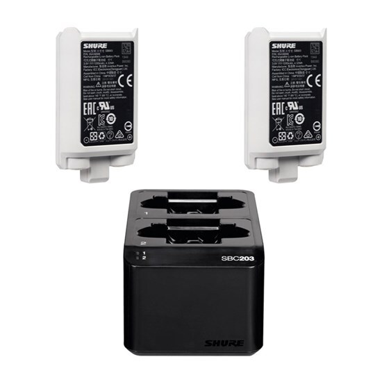 Shure Battery Li-ion Rechargeable for SLXD. 2 x Batteries and 1 x SBC203 Charger