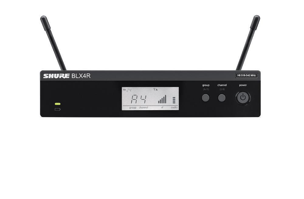 The BLX4R rack-mountable receiver featuring rugged metal construction, simple setup and intuitive controls. One-touch QuickScan frequency selection quickly locates the best open frequency in case of interference. Removable antennas allow for quick antenna distribution. Rack mount kit included.