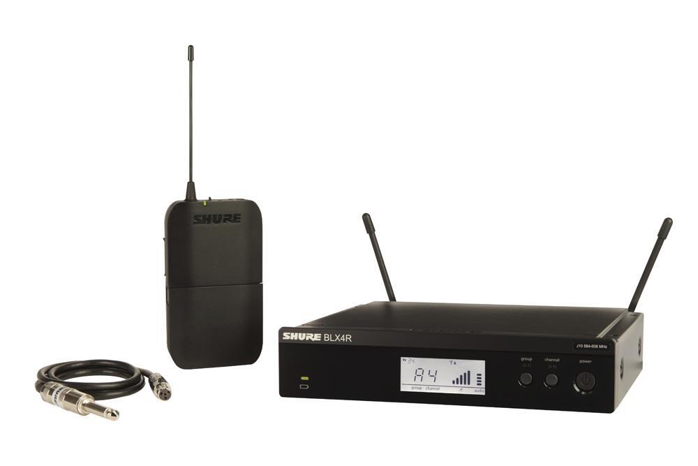 Shure BLX14RK14 Wireless 1/2R Guitar System BLX1 Tx; WA302 Cable; BLX4R Rx Auto Setup: 614-638MHz
