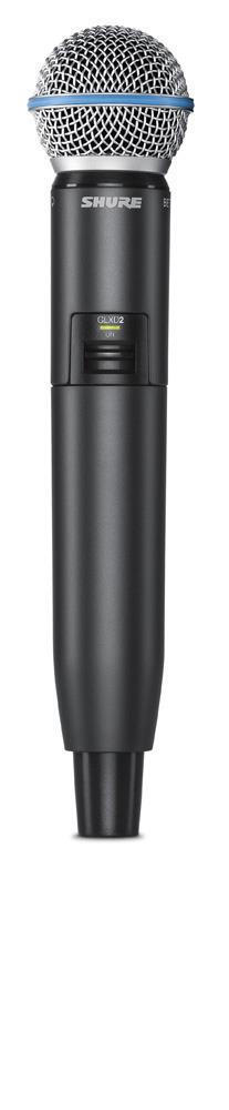 The GLXD2/BETA58 Handheld Wireless Microphone Transmitter works with GLX-D Digital Wireless Systems.
