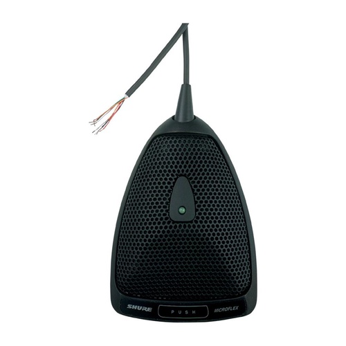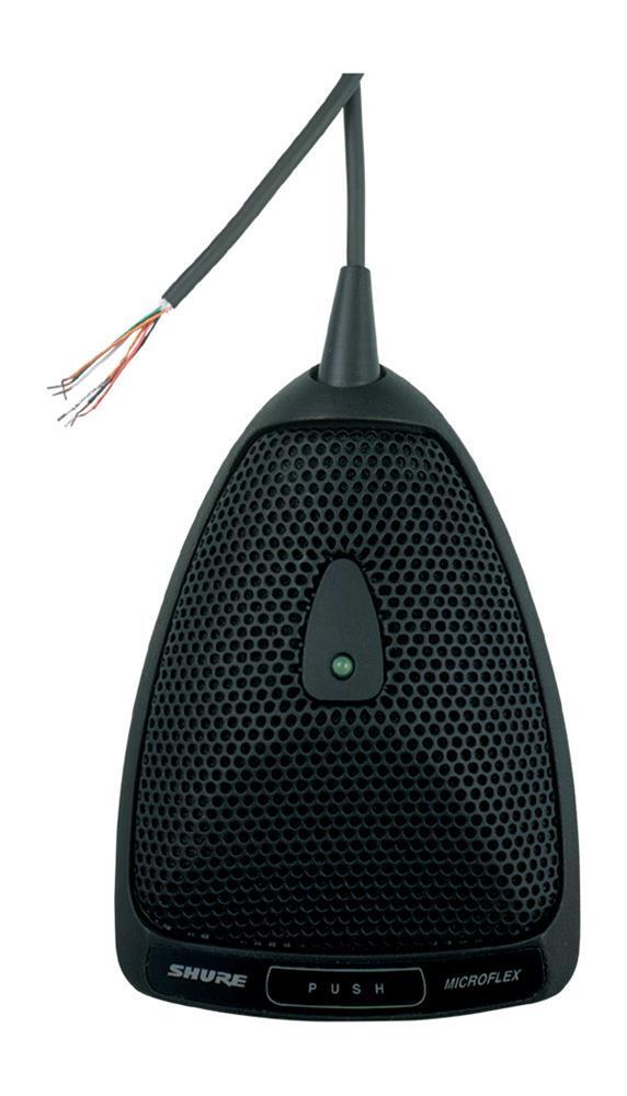 There's never been smarter boundary microphones than the Microflex models from Shure. With many models to choose from, equipped with features like programmable, silent membrane switches, logic inputs and outputs, and LED indicators, Microflex Boundary microphones are the high-quality solution for a range of applications, such as altars, boardrooms and distance learning centers. Every Microflex Boundary microphone features one of the new interchangeable condenser cartridges. Available in cardioid, supercardioid and omnidirectional polar patterns, the Microflex cartridges give you superior Shure quality sound options for every installation. In addition, their programmable switches offer the flexibility to be set for Push to Talk, Push to Mute or Push On/Push Off modes. Attractively designed with a low profile, professional appearance, the Microflex Boundary microphones come with an easy to use paint mask for your custom-color installations.