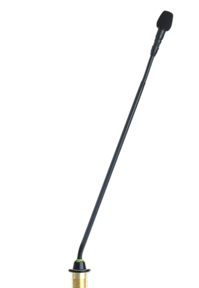 The Shure MX415 surface mount version is a gooseneck microphone with a Bi-Colour LED or light ring status display. It has a 381 mm gooseneck and is suitable for boardrooms and other sites where aesthetics are important.