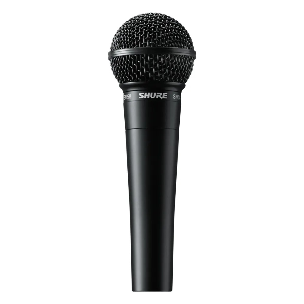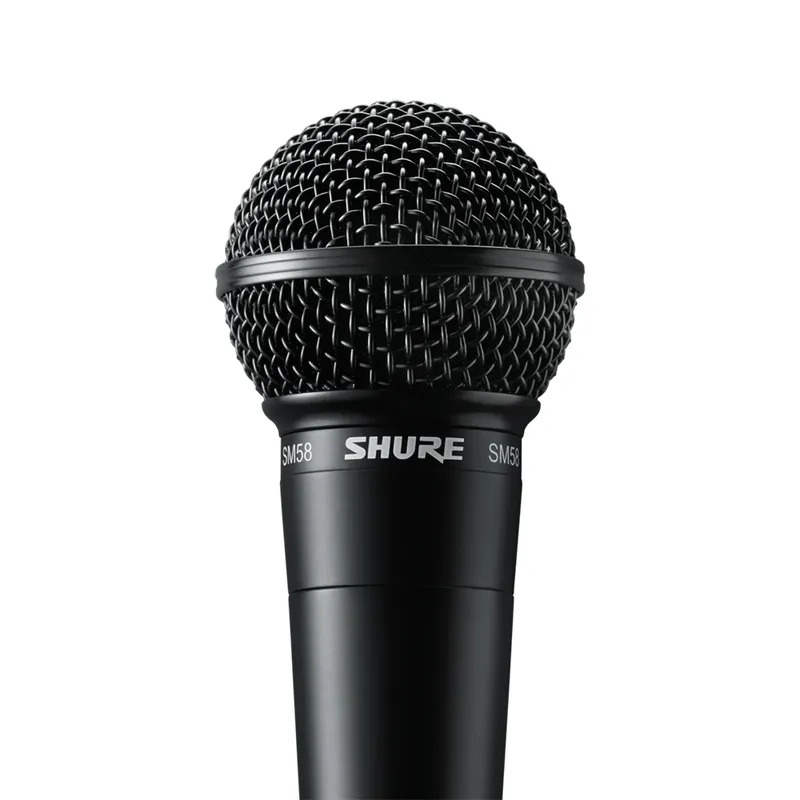 The Shure SM58 unidirectional (cardioid) dynamic vocal microphone is designed for professional vocal use in live performance, sound reinforcement, and studio recording. It has a tailored vocal response for a sound which is a world standard for singing or speech. A highly effective, built-in spherical filter minimizes wind and breath "pop" noise. A cardioid pickup pattern isolates the main sound source while minimizing unwanted background noise.