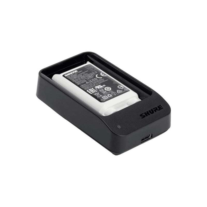 USB single battery charger can be powered from A/C power sources and USB ports to charge one Shure SB903 Lithium-Ion Rechargeable Battery for use with SLX-D Digital Wireless Transmitters.