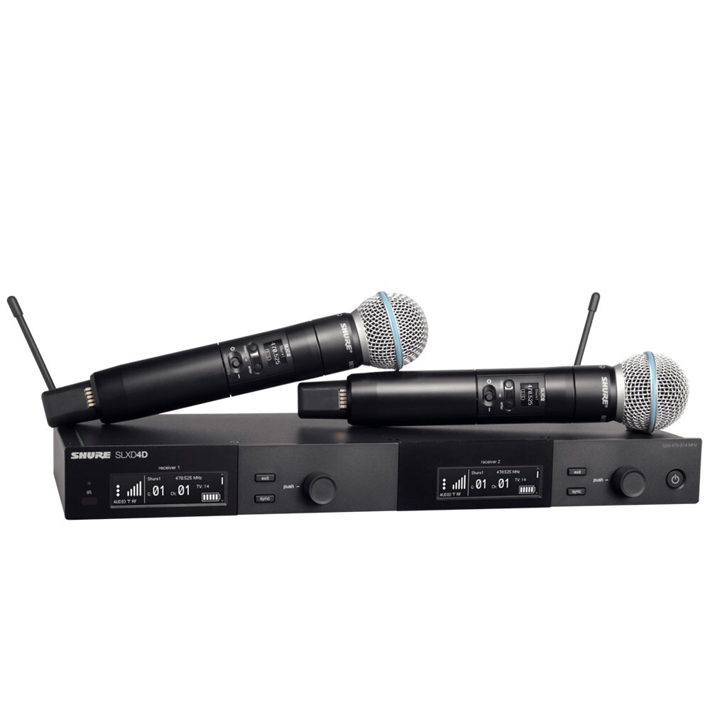 Shure Wireless Dig Handheld System Dual Channel; SLXD2 Tx; Beta58 Mic;SLXD4D Rx;520-564MHz