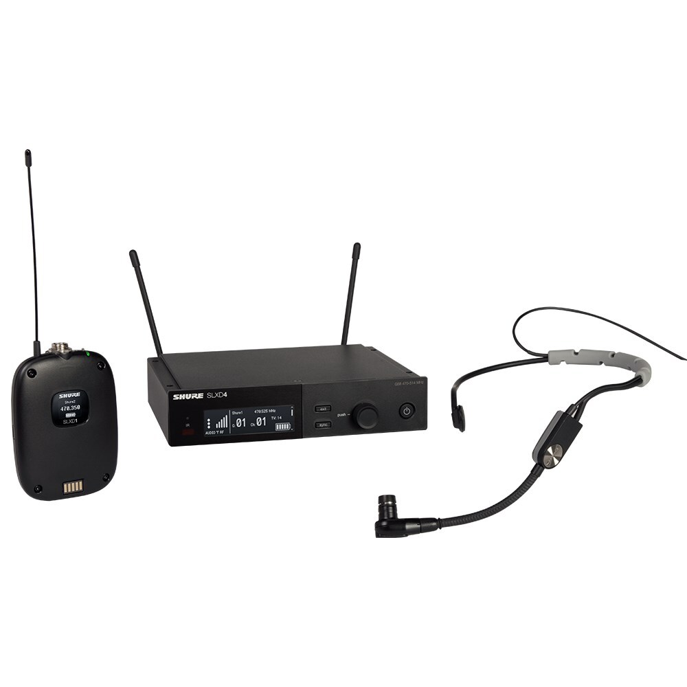Featuring an SM35 Performance Headset Condenser Microphone, SLXD1 Digital Wireless Bodypack Transmitter and SLXD4 Digital Wireless Receiver. The SM35 Performance Headset Condenser Microphone gives multi-instrumentalists the freedom to express themselves without sacrificing sound quality. A tight, unidirectional cardioid polar pattern provides excellent rejection of off-axis sound sources to prevent feedback and signal bleed onstage, whether in use in small clubs, large installations, or arena tours. SLX-D Digital Wireless delivers transparent, 24-bit digital audio and rock-solid RF performance with easy setup and rechargeability options in a suite of versatile wireless system configurations. Featuring industry-leading digital wireless technology and design, the SLXD1 easily syncs with a wireless receiver. TQG connectivity to a variety of microphone options guarantees the right solution for a wide range of applications, from day-long conference to night time performances.
