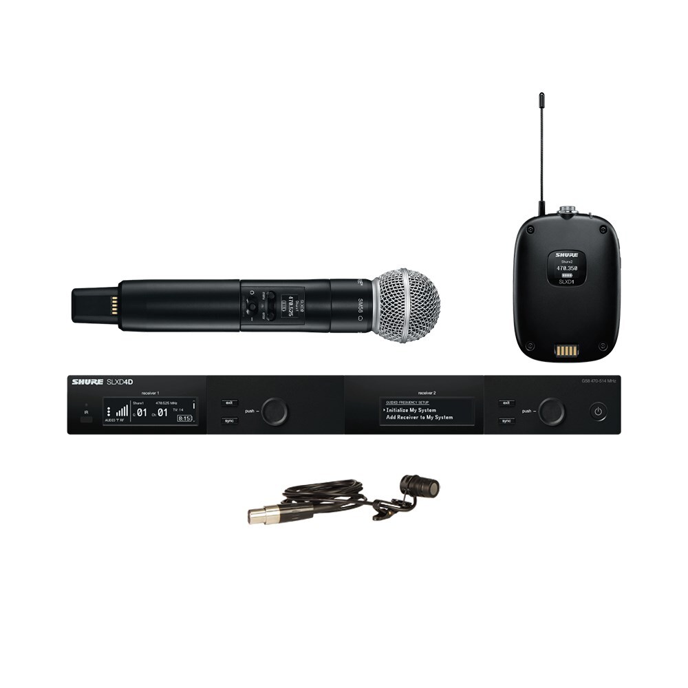 Shure Wireless Digital Mic System Dual Channel; SLXD1 Tx/WL185 & SLXD2SM58;SLXD4D Rx;520-564MHz