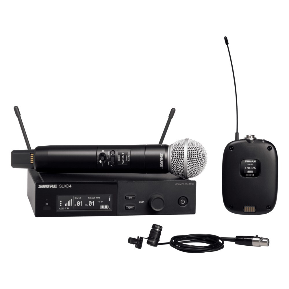 Shure Wireless Digital Mic System SLXD1 Tx/WL185 & SLXD2/SM58 & SLXD4 Rx;520-564MHz