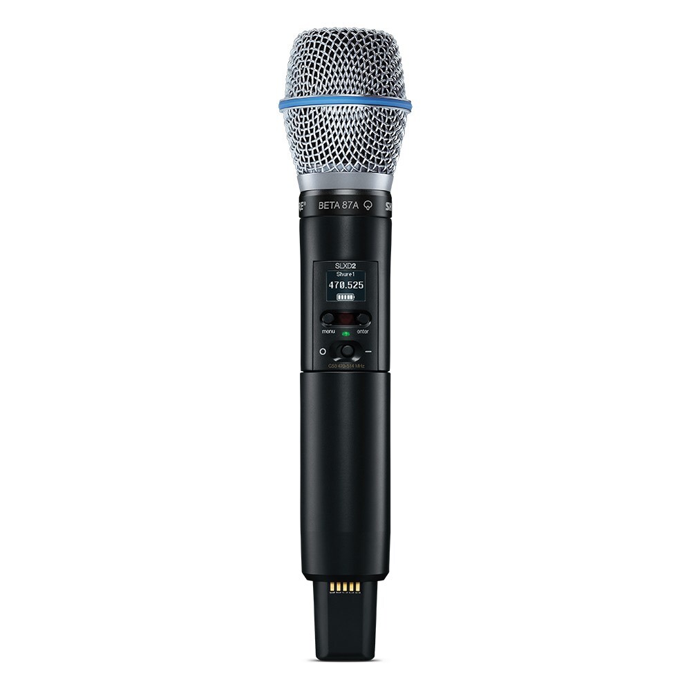 Featuring a BETA 87A handheld wireless microphone transmitter, SLXD2/BETA87A combines professional features with simplified setup and operation. SLX-D Digital Wireless delivers transparent, 24-bit digital audio and rock solid RF performance with easy setup and rechargeability options in a suite of versatile wireless system configurations. Featuring industry-leading digital wireless technology and design, the SLXD2 easily syncs with a wireless receiver. A variety of interchangeable vocal microphone choices guarantees the right solution for a wide range of applications, from day-long conference to night-time performances.