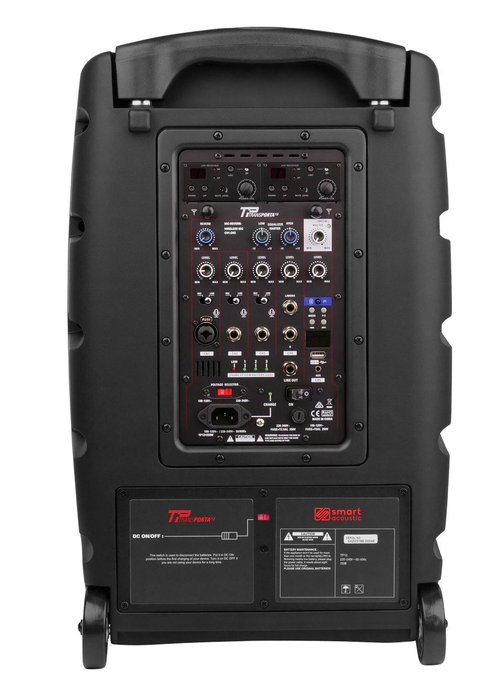 The Smart Acoustic TRANSPORTA 12 V2 (520-542MHZ) is the Ideal portable PA system for your event, function or presentation.It enables real versatility with use on either AC mains power or DC power, via the in-built SLA Batteries for extended portable runtime.