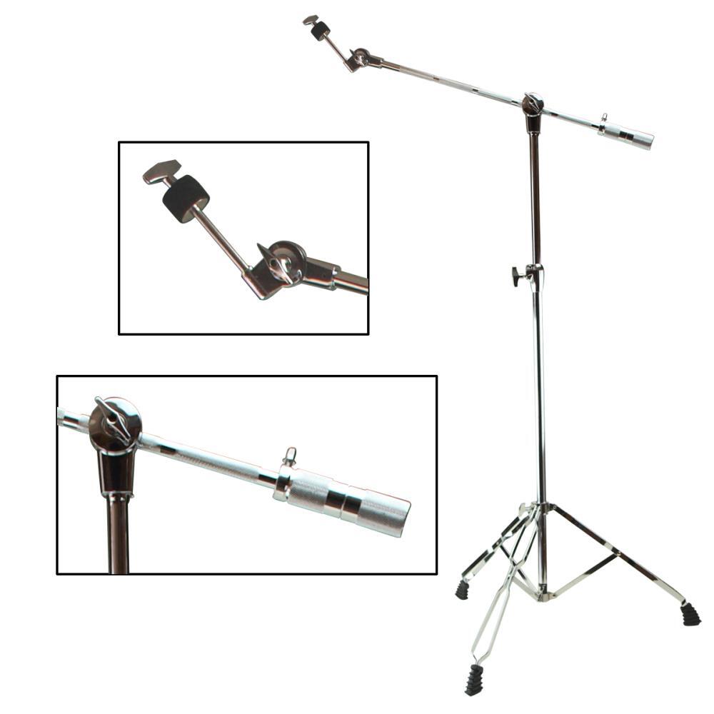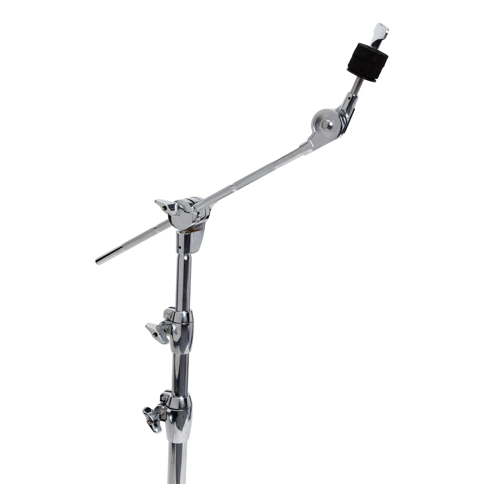 This boom stand is height adjustable, has a double braced leg base for added stability, and non- slip rubber feet. The long boom arm also has a tilt cymbal angle adjustment which enables you to precisely position your cymbal.