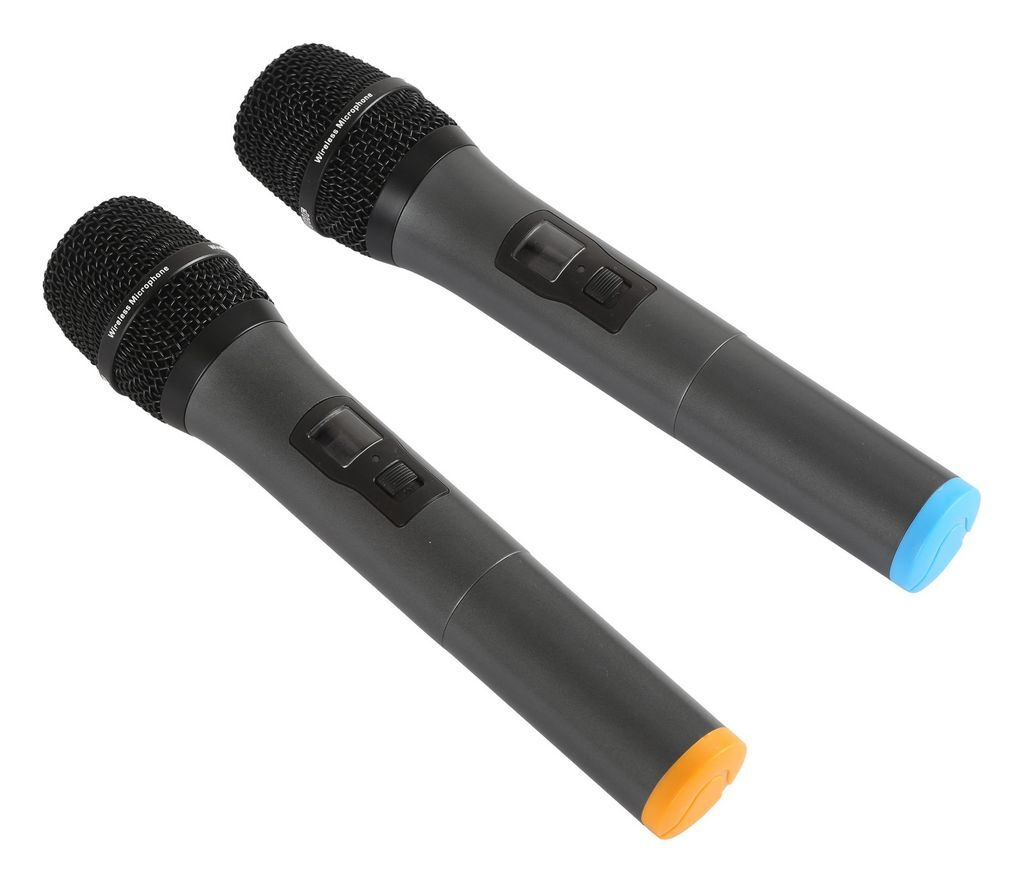 This is a nice all round solution for many situations .Great for Karaoke, Musicians, Vocalists, Public Speaking and is built at a price that is affordable . Each microphone has an inbuilt battery tester (each takes 2x AA batteries - 4x included) lasting 4-6 hours and each microphone has its own on/off switch. The receiver unit has individual microphone volume controls and dual RF signal level indicators and an on/off power button.