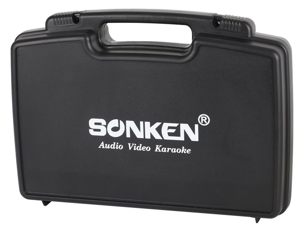 The newly designed and great value Sonken UHF Dual Channel Professional Wireless Microphone kit comes complete with frequency status LCD on each Microphone and the Receiver Unit and also a Hard carrying case