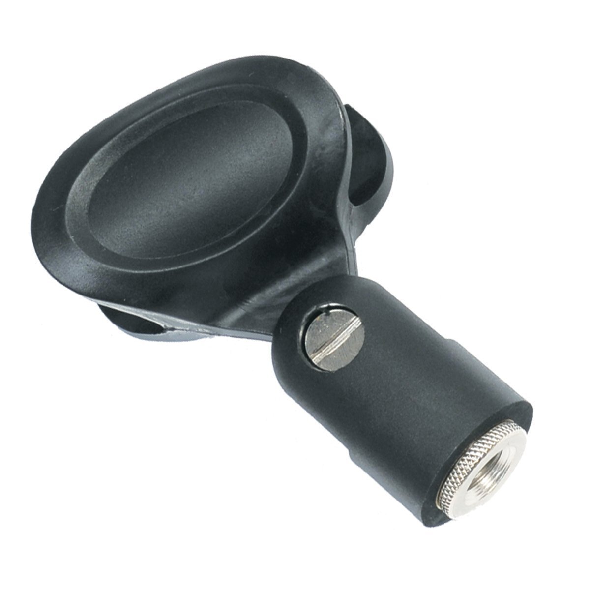 The SoundArt MCLIP-DE-032 Deluxe Large Plastic Microphone Clip is a 25-30mm mic clip that screws onto all universal microphone stands.
