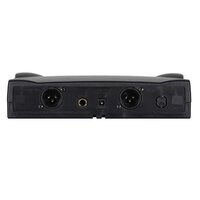 This model features a two channel receiver, which means that the two included hand-held wireless microphones can be used at the same time without interference from one another. The volume of each microphone can also be independently adjusted from the front panel of the receiver.